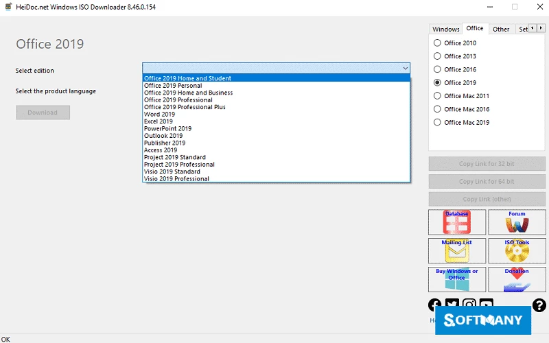 このツールは、ドロップダウンメニューから必要なものを選択できる柔軟性を備えた、ユーザーフレンドリーなインターフェースを備えています。ユーザーは、Microsoft Office 2010、Office 2013、Office 2016、 Office 2019などの正規のMicrosoft製品をダウンロードし、CDまたはDVDに書き込み、互換性のあるデバイスで再生することができます。